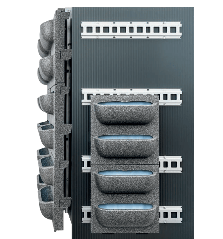 Unikali modulinė sistema su keičiamomis dviejų dydžių augalų kasetėmis gali suteikti tvarią ir gyvybingą išvaizdą tiek plokščioms, tiek išlenktoms sienoms.